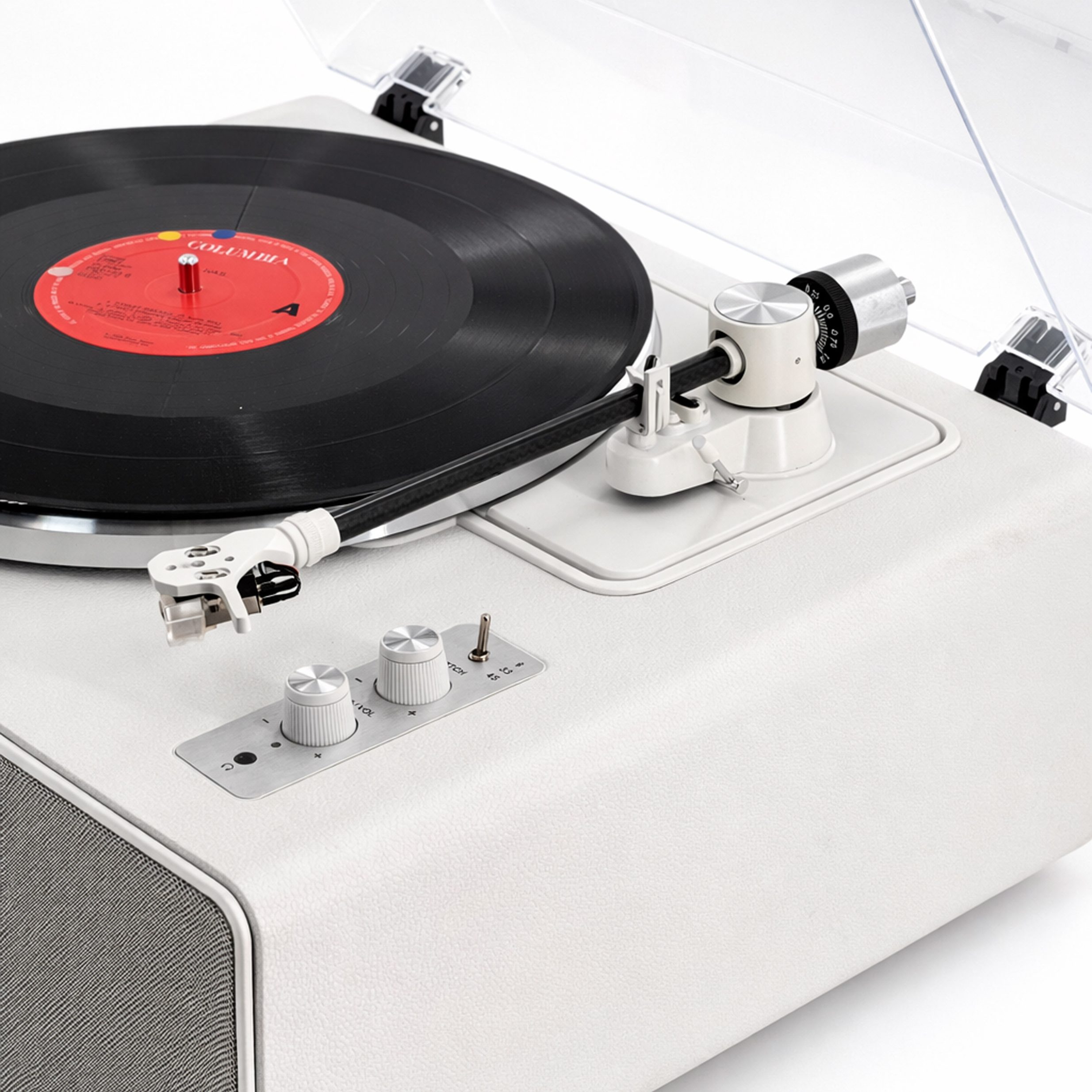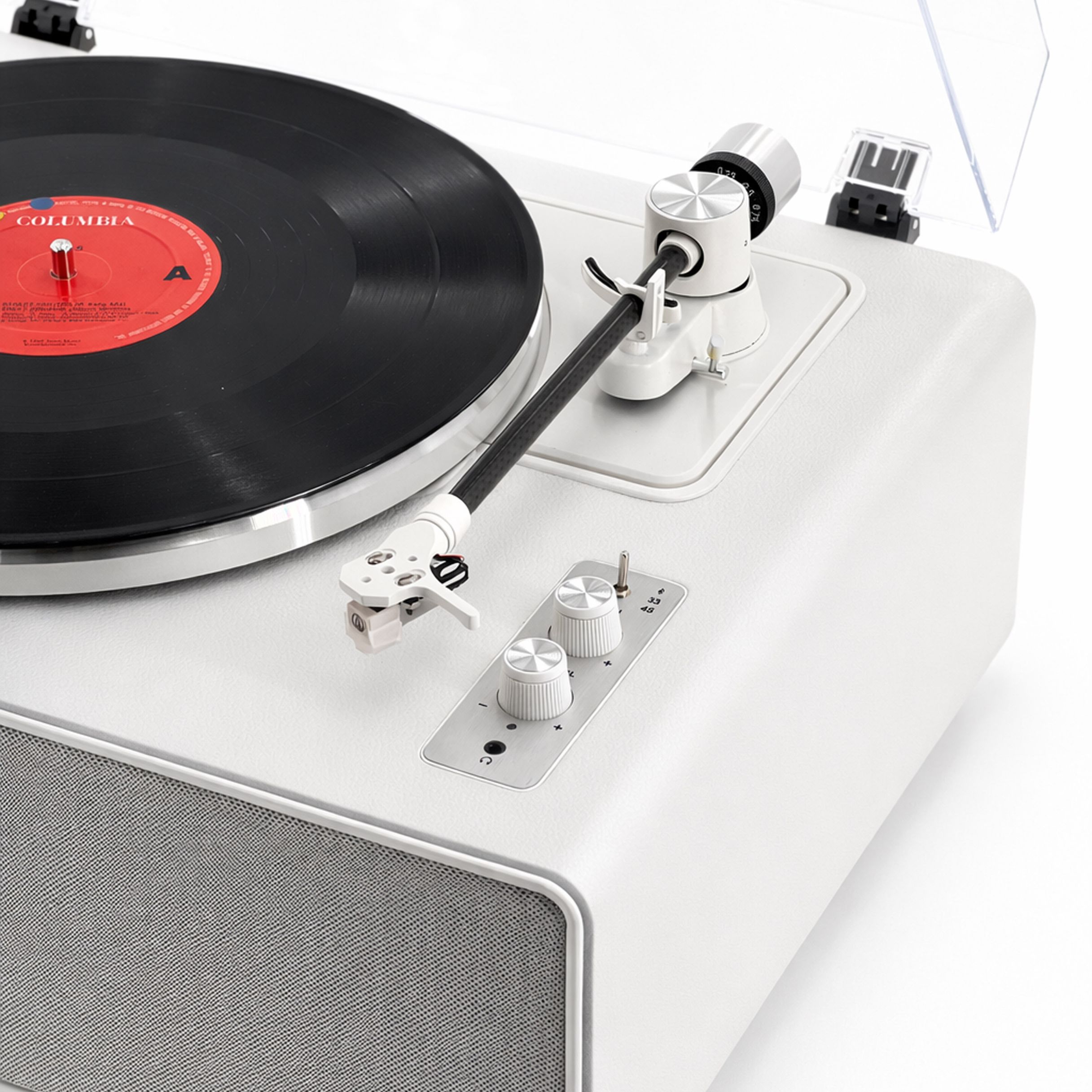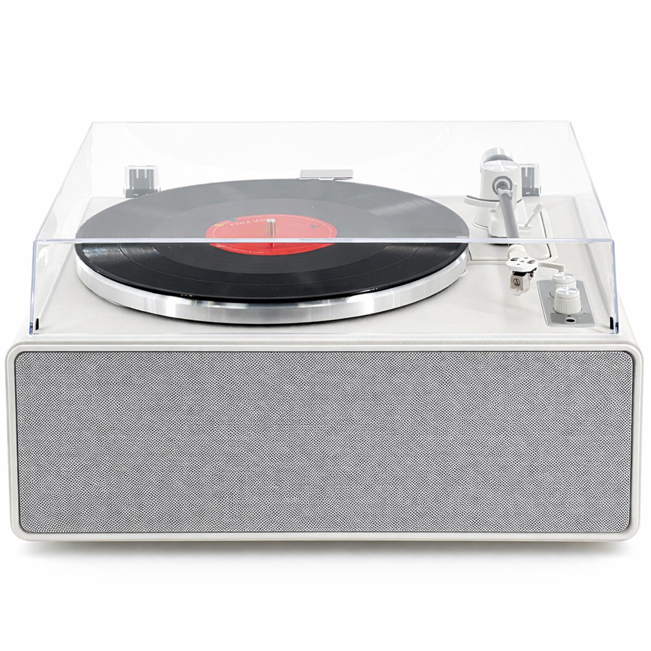 Key Highlights: Built-in stereo speakers (no external system needed) Belt-drive turntable for smooth playback Easy-to-use controls, plug & play Minimalist design for modern interiors Compact all-in-one solution Specifications: Output Power: 2 × 10W Drive Type: Belt Drive Cartridge: AL-3600L Speed: 33 / 45 RPM Speakers: Built-in stereo speakers Power Supply: DC adapter